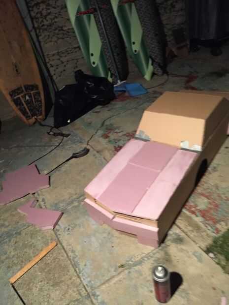 La siguiente parte foamular es el área debajo de la rejilla. Esta área es mucho más fácil que usted no necesitará de la forma o las piezas de la arena. Todo lo que necesitas hacer es simplemente cortar piezas para cubrir el área debajo de la parrilla, manteniendo un pequeño rectángulo en la parte inferior y pegarlos en la misma forma (foto #11 para la referencia).