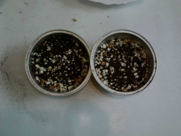 Preparar las semillas y plántulas: mezcla de suelo: perlita de 50% 50% worm castings. Llenar la semilla y poner las semillas, luego agua.