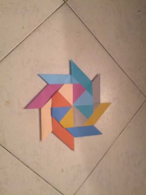 Paso 1:Necesita 1 pedazo de papel cuadrado de un color, 4 pedazos de un papel cuadrado de colores diferentes y 4 pedazos de papel de otro colorPaso 2: Un color de papel del doblez sobre aquíPaso 3: Dale la vueltaPaso 4: Hacer el pliegue a lo largo de