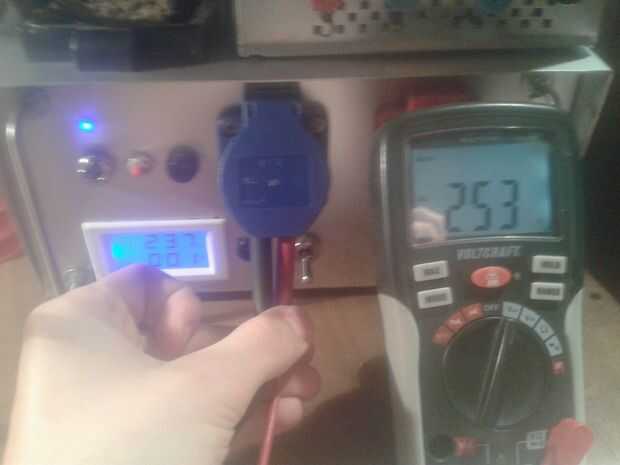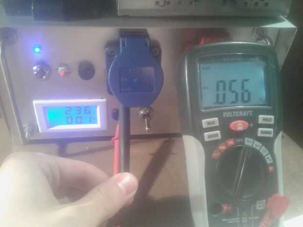 Cerrar el caso y encienda. Ahora toma un multimetro y medir la tensión entre las dos conexiones del enchufe de pared y el caso. No debe haber más de unos pocos voltios. Ahora Mida la tensión entre las dos conexiones del enchufe de pared. Debe existir la tensión de la red.