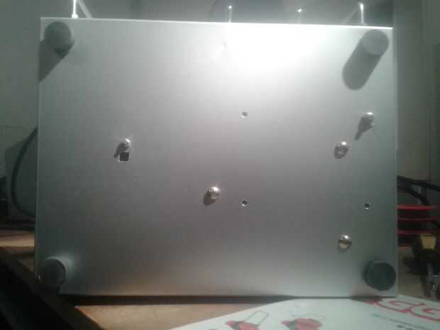 He hecho el caso en la escuela por lo que tengo hay fotos de la fabricación :-). Poner el transformador en el caso y marque los orificios del transformador para el caso. Sacar el transformador y taladrar los agujeros con la dremel. Ahora poner el transformador en y atorníllelo al caso. A continuación tienes que hacer un agujero para la clavija de C13 con la dremel. La instale. Soldar los cables al enchufe.