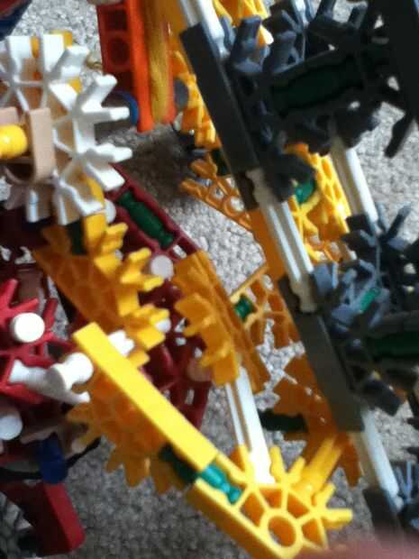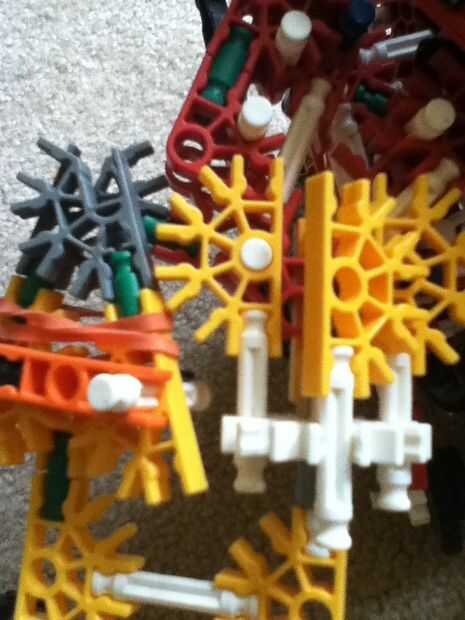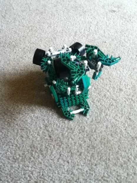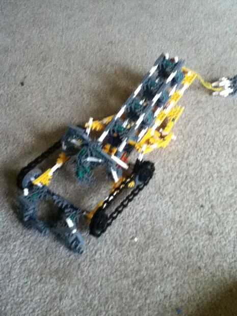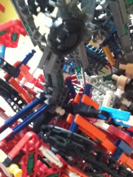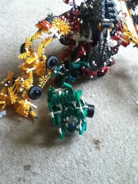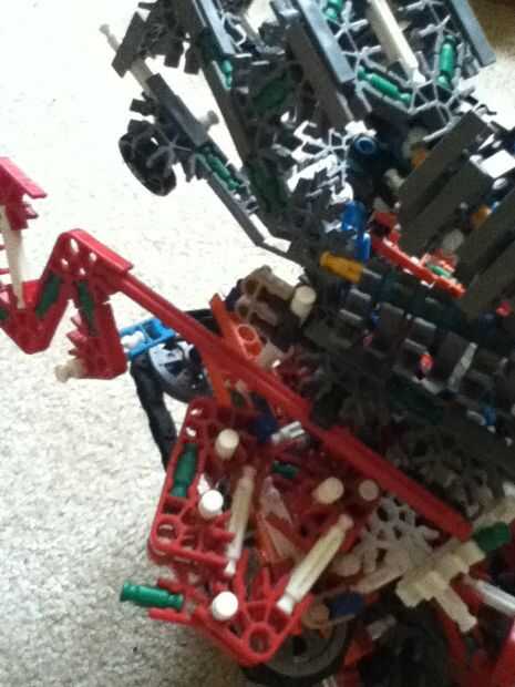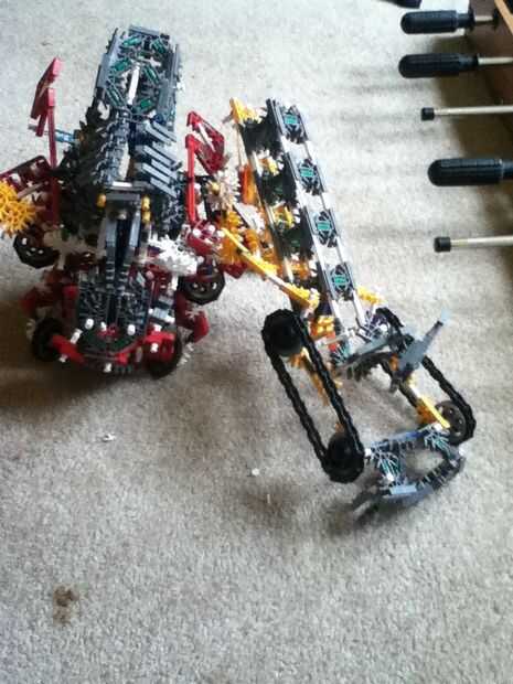 Scrapper connects by putting the pegs on scavenger into scrapers claw hand. El les se puede establecer en unos ángulos pero mantenerlos así para que no caiga aparte fácilmente.