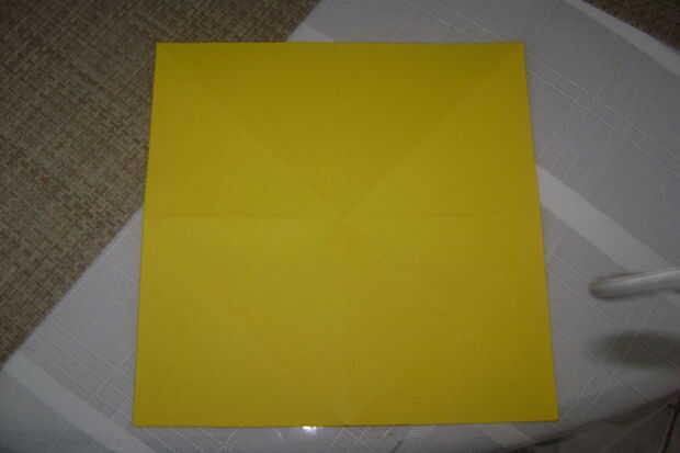 Revelar todo a la obra original de papel y doblar dos esquinas en el pliegue medio a continuación doblar por la mitad.
