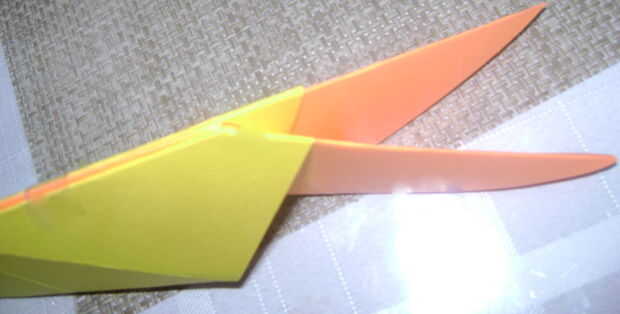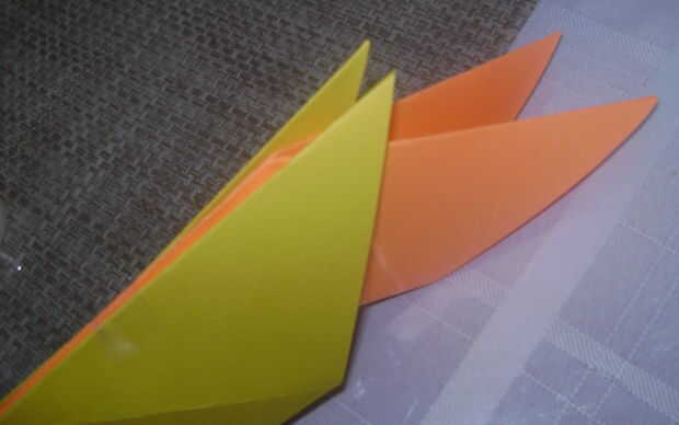 Conectar los pedazos de papel insertando un lado cerrado en un lado abierto de un diamante, luego doblar las aletas dentro de otro diamante.