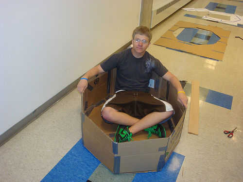 Cinta adhesiva funciona moderadamente bien, manteniendo las conexiones, pero porque aquí estamos utilizando cartón madera pegamento pegamento o arte sería sabio utilizar después de que las conexiones se realizan. Ir alrededor de los bordes de las conexiones con el pegamento para sellar las grietas.