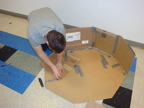 Para este paso tienes que hacer un montón de corte y medición. Es mejor tener un espacio de trabajo limpio y una abundante cantidad de cartón.