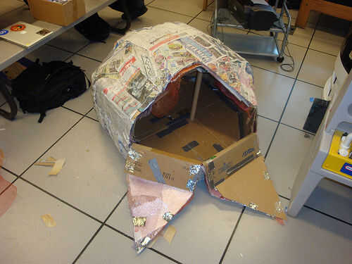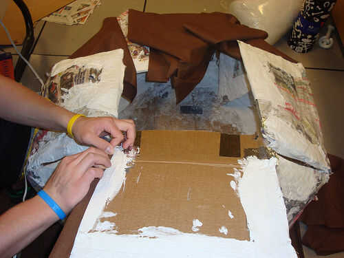 Una vez que se han cortado las aletas, tendrá que envolver cinta alrededor de cada uno de ellos, más asegurar la maché de papel a la cartulina. Luego use yeso paño para ir alrededor de los bordes y asegúrese de que las aletas son robustos y fuertes.