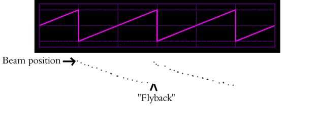 Si una corriente pasa a través de una bobina, crea un campo, si la corriente aumenta linealmente, el siguiente campo, si el campo sigue, el doblez en el haz de electrones sigue linealmente demasiado.