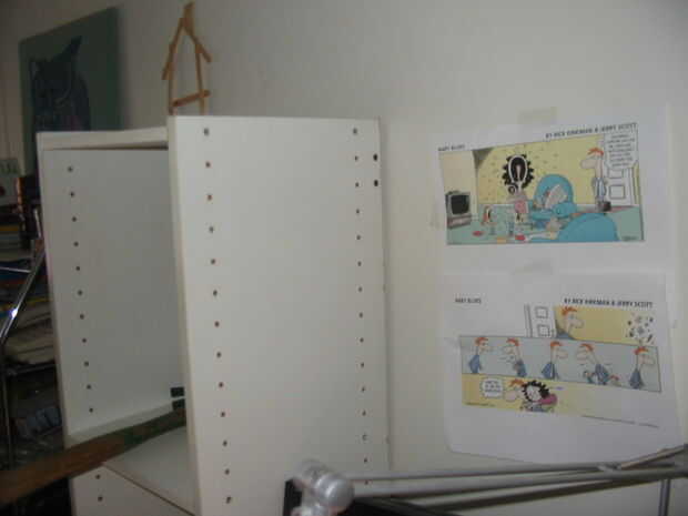 Así que estas unidades de estanterías chutando alrededor ocupando espacio, que en un pequeño apartamento es un bien valioso, fueron un hallazgo de basura utilizamos en otro departamento para cintas VHS. Cuando despejó muchos de ellos hacia fuera y trasladó las cintas que estábamos manteniendo no quería deshacerse de ellos. Nos usaron de libros y similares. Nos dieron otra estantería que había vaciado estas. Mientras que la esposa estaba en el trabajo de los niños y tengo que trabajar. Limpieza, reorganización, organizar y encontrar las piezas necesarias para que este suceda y hacerlo en 5 horas con bebé para cuidar, clases de educación en el hogar a realizarse en la parte superior de los trabajos de asimiento de casa regular que necesitan hacer, es absolutamente una tarea desalentadora. Perseveró y tenía la mayor parte de él antes de que ella llegó a su casa.