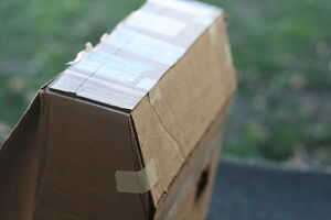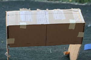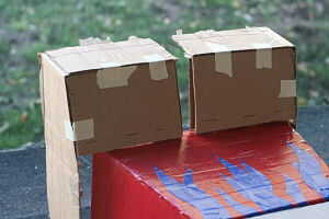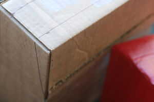 Cortar las líneas superior y lateral. Presione esta parte frontal en la caja para crear el ángulo y fije temporalmente con cinta de enmascarar.