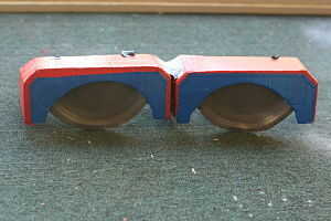 Cortar un semicírculo en cada eje para que las ruedas pueden verse más adelante.
