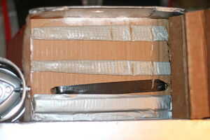 Encontrar una tapa de la caja de zapatos que es similar en anchura al frente de la campana. (Puede también convertir una caja de cracker u otra caja de cartón mediante la eliminación de la parte delantera y parte de los paneles laterales hasta que tenga la profundidad deseada de su parrilla.)