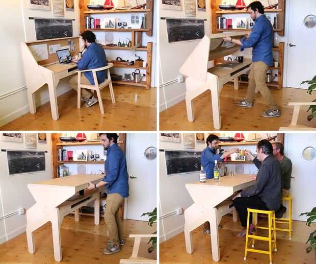 ¿Viviendo en un apartamento pequeño significa tener que hacer una elección: escritorio o barra? Usted puede tener con la barra de transformación / escritorio!