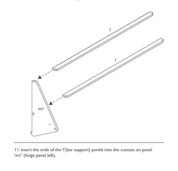 La barra superior se compone de 5 piezas. Primero, os adjunto las dos vigas que en de los paneles de la bisagra, luego sujeté a la barra superior a los tres paneles.