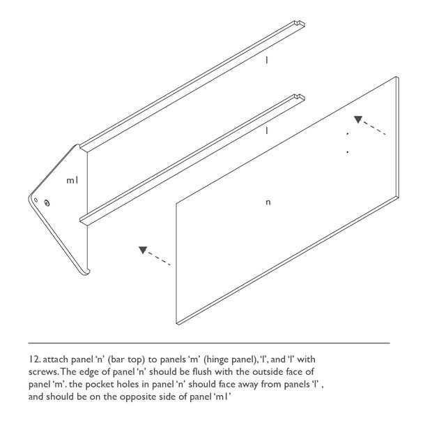 Dejando el segundo panel bisagra, puesto la barra de inicio en el escritorio principal para que el orificio de la bisagra alineado con el poste de la clavija en el panel de pierna. Finalmente, agrega el segundo panel de bisagra y había atornillada en su lugar.