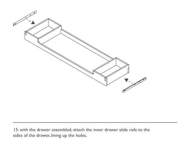 Con el cajón montado, os adjunto los rieles interiores de las diapositivas de sorteo por alineándolos con los agujeros que fueron taladrados previamente en los lados del panel.