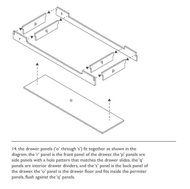 El cajón es la única pieza de madera contrachapada de 1/2". Esta Asamblea es bastante simple ya que es pequeño, y diseñé las piezas por lo que puede sólo ajustan de una manera. Con todos los paneles laterales y divisores atornillados juntos, he insertado el piso del cajón en el bolsillo empotrado en la parte inferior.