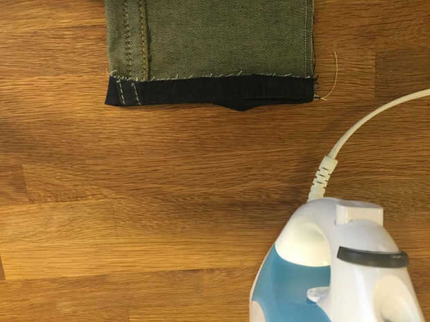 18 crear un manguito de 1/2" en la parte inferior de los pantalones vaqueros y hierro en su lugar