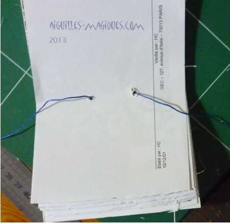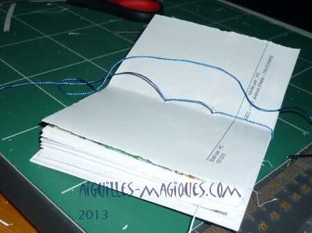 Comenzar la costura por la parte superior de la portátil, manteniendo una larga cola. El hilo debe ir encima y por debajo.