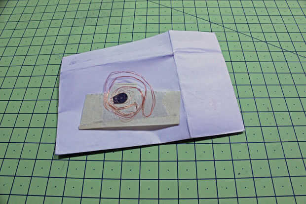 -Para probar nuestro, utiliza cinta adhesiva para fijar el chip y la antena a un pedazo de papel y dobla en nuestra cartera (ayuda a evitar cualquier aspecto divertido!)