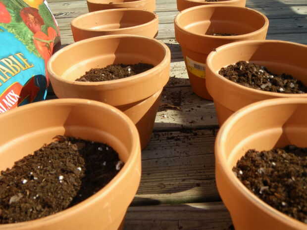 El paso más fácil y más evidente, adición de suelo para las macetas. Simplemente llene las macetas cerca de 3/4 completo con el suelo y sacuda las macetas para nivelar la tierra.
