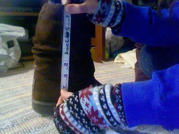 Usando una cinta métrica para registrar la altura de tus botas midiendo desde la boca a la circunferencia del tobillo, el tobillo y la circunferencia de la boca.