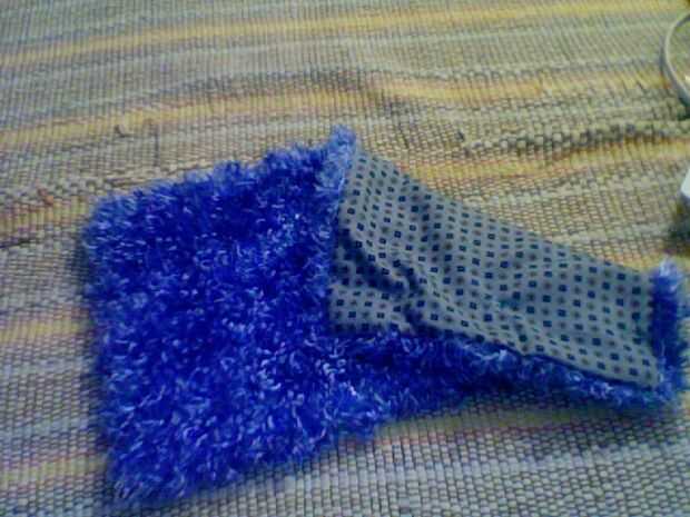 Luego con derecho coser la pieza de guarnición musulmana la polar peludo.  Repita el procedimiento para la segunda pieza y tirón derecho contra derecho hacia fuera. Esperar para coser el orificio en el revestimiento hasta que han creado los ojales.