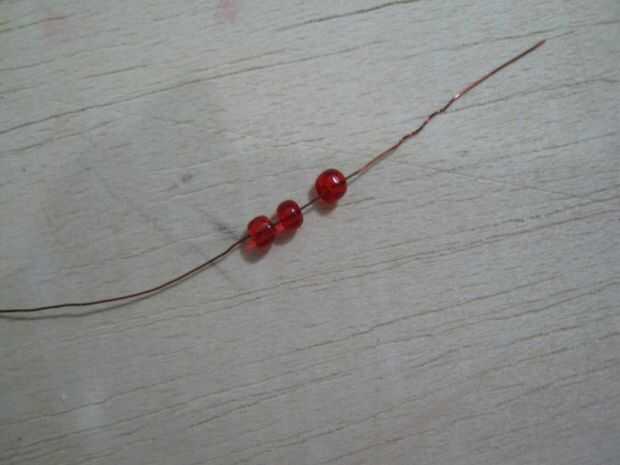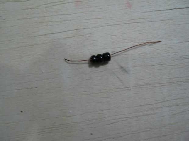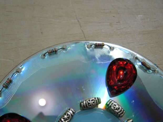 Fijar las viejas resistencias en los orificios alrededor. Coloque tres granos en un pedazo de alambre y colocar en los agujeros taladrados. Las resistencias y los granos serán de manera alternativa, como se muestra en las fotos.