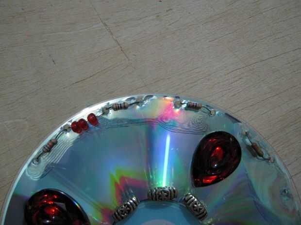 la lámpara de la palabra significa un sostenedor de vela con una espalda plana, a menudo reflexivo. Como solamente hice la parte de atrás no puedo llamo una lámpara, por lo que es un no aplique.Primero hice esto con los CD de sobras de una lámpara qu