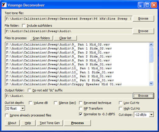 Después de ejecutar a través de este, que también desea deconvolve un conjunto de respuestas de impulso utilizando el altavoz sólo las pistas como el archivo de tono de prueba. Recuerde los archivos a una carpeta diferente que el anterior conjunto de salida. Terminado el proceso, compruebe estos hacia fuera demasiado y estén bien. Una vez más, que no tenga buena suerte con ellas - pero si lo hace, tendrá una respuesta más precisa.