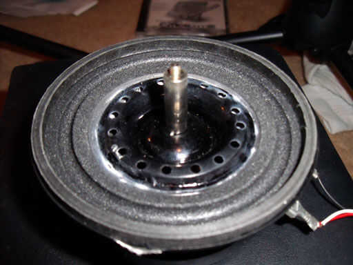 8. un perno, dos tuercas y unas arandelas de plástico (el más pequeño y más ligero mejor, pero el tornillo debe ser tiempo suficiente para montar la tartera con un montón de espacio libre de los lados del altavoz)