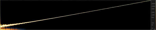 El barrido de seno que más adelante crearemos lentamente pasará a través de frecuencias todo audibles (y algunos inaudibles), como manchas a través de un solo impulso de frecuencias de menor a mayor. Comparando el tono original de la prueba con la de la tartera, podemos deconvolve una respuesta de impulso.