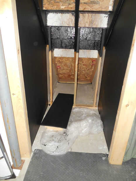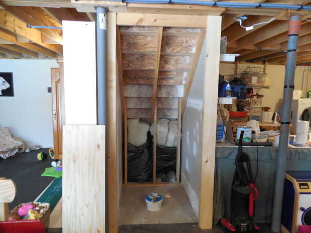 1. primero de barro y cualquier costuras de cinta y cabezas de tornillo si su espacio está inacabado como el nuestro era (yeso pensaba ya en lugar). Mi marido utiliza un material seco rápido con poco polvo, por lo que este proceso sólo se tomó un día. Para ser totalmente honesto, creo que sólo ocupó las costuras en lugar de grabar ellos, sino que es un armario, y es en el sótano.