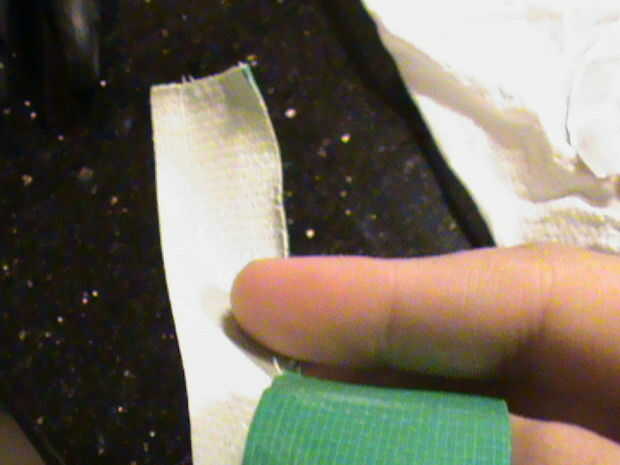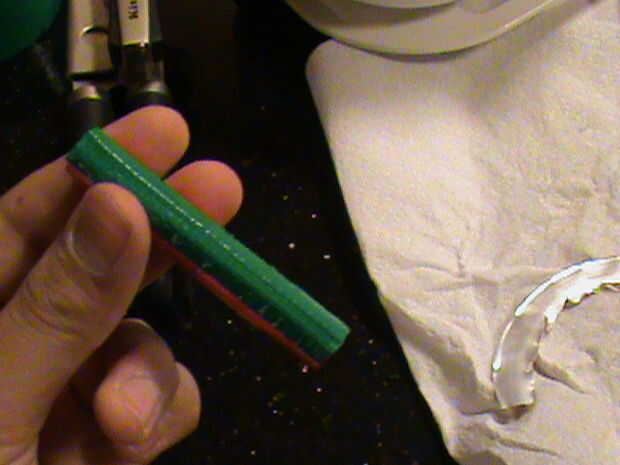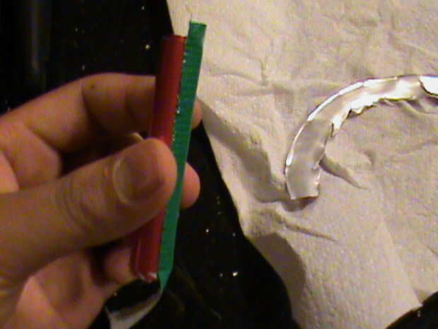 Por supuesto, usted necesitará mantener todavía, así que alguna cinta adhesiva para mantener el lápiz; para que no ruede hacia atrás en la forma de la lata. 1/8 o 1/6 de una franja será lo suficientemente bueno para seguir juntos. Corte cualquier bit de la cinta que se sobresale. Se podría lijar hacia fuera la parte superior e inferior del cuerpo para hacerlo incluso, pero no tienes que.