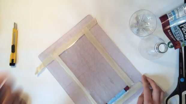 El material del rodillo abierto y pulse plano encima de la almohadilla de corte. Utilice cinta de enmascarar para mantener abajo de la hoja, con la curvatura hacia abajo. Utilice otro pedazo de cinta para mantener abajo el borde opuesto de la hoja. Puede ser útil a la cinta alrededor de los cuatro lados de la botella para hacerla muy plano y más fácil de cortar. Para este paso, asegúrese de que los bordes de la botella son más o menos alineados con la rejilla en la almohadilla de corte. Esto también le ayudará a maximizar la cantidad de tiras que puede salir una sola botella.