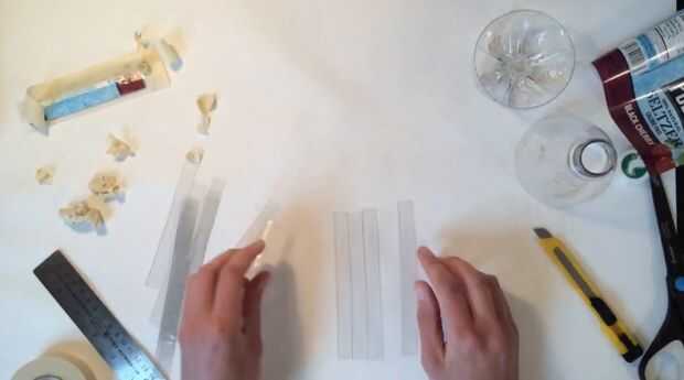 Usando el cuchillo y regla, igual anchura del corte tiras abajo a lo largo de la lámina de plástico. Asegúrese de que sus cortes ir todo el camino a través del material.