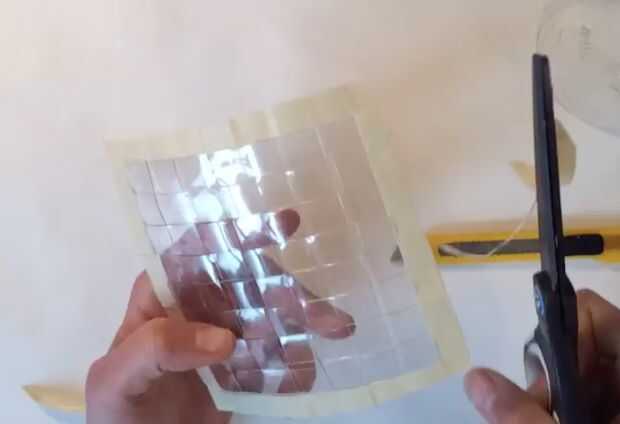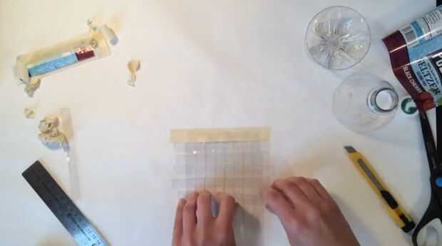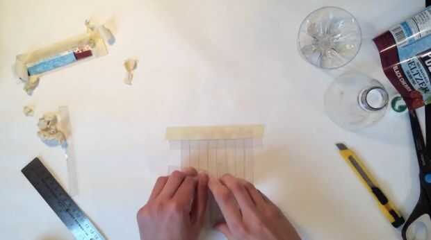 Una vez las tiras han sido tejidas, use cinta adhesiva para asegurar los bordes de la montaña. Cortar los extremos desiguales y utilice una pieza final de la cinta para envolver alrededor de los bordes expuestos.