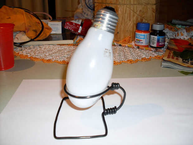Con alicates y alambre de cobre, construir una base con el formato de las fotos y ajustar la lámpara