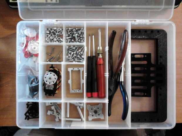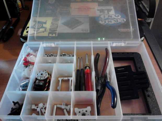 Tengo muchas partes de Actobotics y la caja que me ayude a organizar mis partes robóticas. También puedo tomar mis partes donde yo quiera sin perderles.