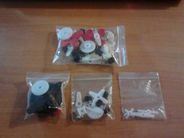 En primer lugar tomar las piezas de los motores servo y organizarlos en pequeñas bolsas de plástico