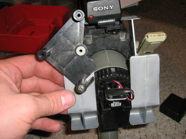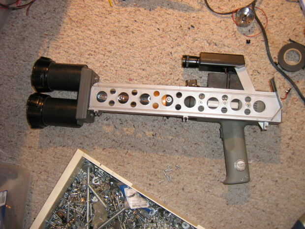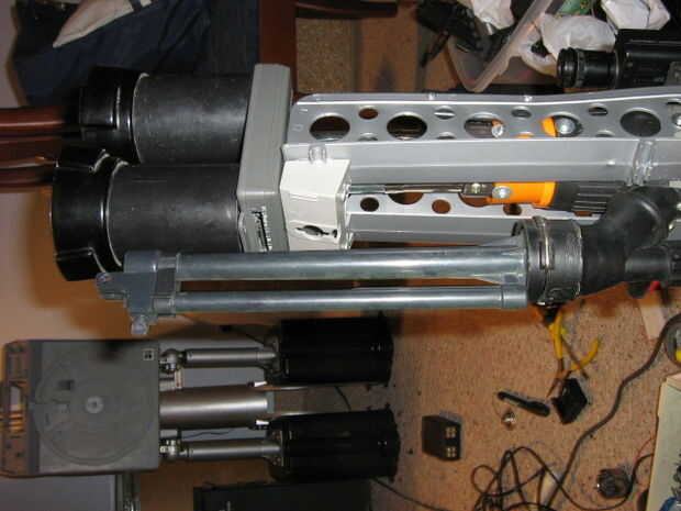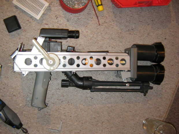 Ahora, basura plástico uso para hacer el arma mira kick butt. Fije con tornillos.