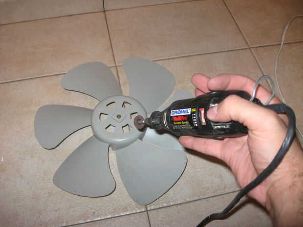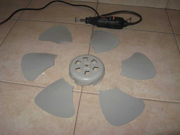 5. remover las aspas del ventilador con la Dremel (uso el accesorio de disco)