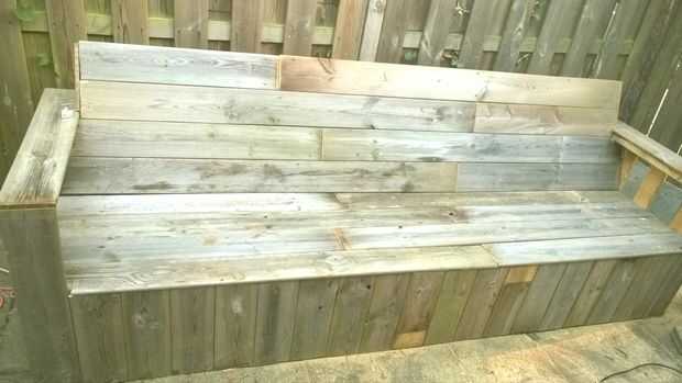 Transformar viejas plataformas en un banco del jardín (3 / 3 paso)