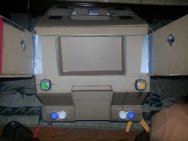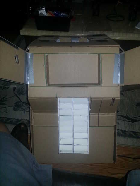Volvió a la mesa de dibujo y me di cuenta que no podía volver a utilizar nada de la original que hice. Tuve que empezar de cero. Una noche mientras yo estaba viendo televisión con mi novia (la linda Caperucita Roja en la primera página) le dije "sabes lo que voy a hacer mi camino y poner mi propio apestó en él" jajaja. y eso es lo que hice. Surgió un nuevo pedazo de pecho y el torso que me encajan mucho mejor y pude ver mucho más con el casco en. Usé 2 marcos con algún abrigo azul brillante interior. También usé algunos sostenedores de la lente de contacto, Refrescadores del aire y algunos tornillos. Surgió la idea de tener un pedazo de pecho que se abre para revelar la matriz de liderazgo que tenía sentado dentro, quizás con algunas luces, cables y circuitos de computadora vieja. En este punto en el tiempo que me trajo una más grande, mejor pegamento pistola porque el que tenía era del tamaño de tu mano y no era poderoso. El nuevo uno fue dos veces el tamaño y había un montón de archivos adjuntos y utiliza más grande barras de pegamento. Era muy potente, quizás un poco demasiado de gran alcance ya tengo una quemadura desagradable en mi mano que inmediatamente burbujeó para arriba.