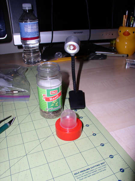 quería hacer luces sobre este traje porque soy estúpido para más detalles. La luz REC/BATT, tomé un envase de chicle pequeño y tenía una luz de lectura. Combinado con la tapa roja de un contenedor de condimentos, hice una luz falsa pilas rojo. La luz en las faldas del lado de las piernas, he hecho una bandeja extraíble que puedo cargar con un glowstick. No es el efecto de iluminación más grande, pero hace el trabajo y es barato.