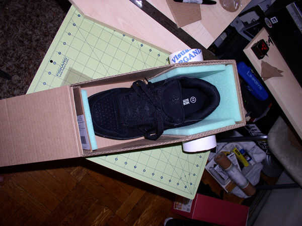 Eran bastante fáciles. Vieron de la forma y cortar hacia fuera. Utilizado los tubos de cartón a los lados para evitar que las piernas arrastrando por el suelo. También son un pivote perfecto punto para los tobillos, y puesto que no está cerrada en el otro extremo, puedo inclinar mis tobillos sin problemas. Para reforzarlos, el exterior del pie tiene orificio en ella. Hay otro pedazo de cartón en el interior que le impide mover más lejos en y refuerza el pie. Con el refuerzo de la pistola de pegamento, no van en cualquier lugar. También tomó la espuma y cerrar el espacio libre alrededor de un zapato que yo puedo fácilmente y con poca dificultad.