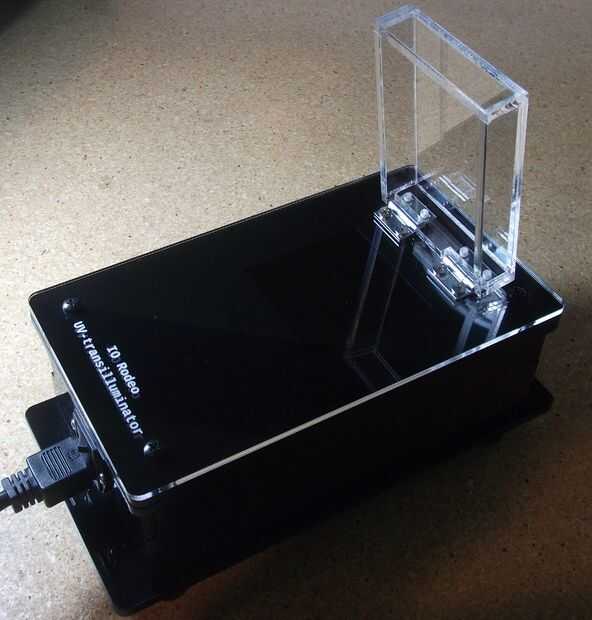Este Instructable tutorial describe cómo hacer un transiluminador UVB (310nm) con una ventana de 7 x 7 cm para visualización de etidio bromuro (SYBR-Safe) manchado o DNA mini-geles. Una vez recopilados todos los materiales, el tiempo de montaje real es aprox. 1-2 horas. Algunas soldaduras se requiere.