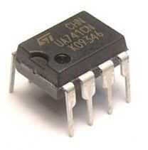 Nuestro protoboard está integrado con una fuente de alimentación, con una fila de agujeros de alfiler ya alimentado con +-15V y tierra, pero usted puede necesitar alimentar tu protoboard manualmente. Lugar el op-amp en el protoboard, introduciendo entre dos conjuntos de las filas de 5 pines. Conectar las patillas 7 y 4 a + 15V y - 15V respectivamente. Continuar para seguir el diagrama para construir el resto del circuito.