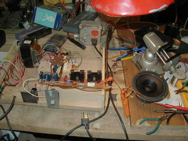 se trata de una compilación que hice de un LM3875. Chip muy fácil de construir, cosa no gusta de este chip es el que sólo es realmente estable con una carga de 8 ohmios, cualquier otra cosa y protege a sí mismo al limitar la potencia de salida.Es un