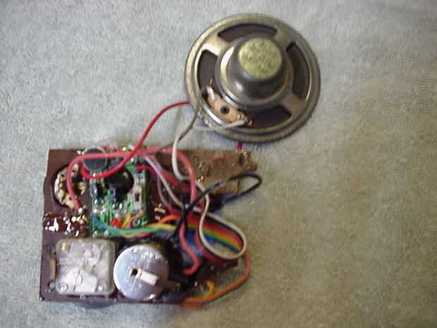 Pegar la placa de circuito y soporte de la batería a la placa de circuito de radio (el lado sin las ruedas de pulgar).